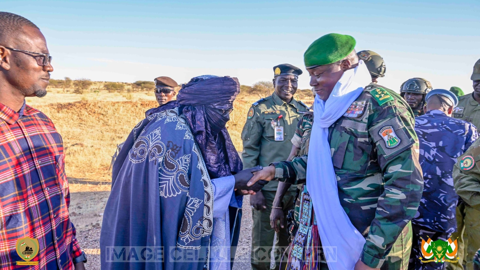 À son arrivée à Agadez, le Président Tiani a été accueilli par les autorités administratives, coutumières et religieuses dans une atmosphère de liesse populaire. Le cortège présidentiel, accompagné par une foule enthousiaste, a eu du mal à se frayer un chemin jusqu’à la case de passage présidentielle, tant la ferveur populaire était grande.