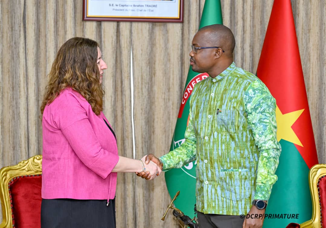 Le Premier ministre Rimtalba Jean Emmanuel Ouédraogo a reçu en audience, ce jeudi 17 juillet 2025, Son Excellence Madame Feriba Hokkacı Esirgen, ambassadrice extraordinaire et plénipotentiaire de la République de Türkiye au Burkina Faso. Cette rencontre s’inscrit dans le cadre des visites protocolaires marquant le début de mission de la diplomate turque, officiellement accréditée depuis le 26 juin dernier.