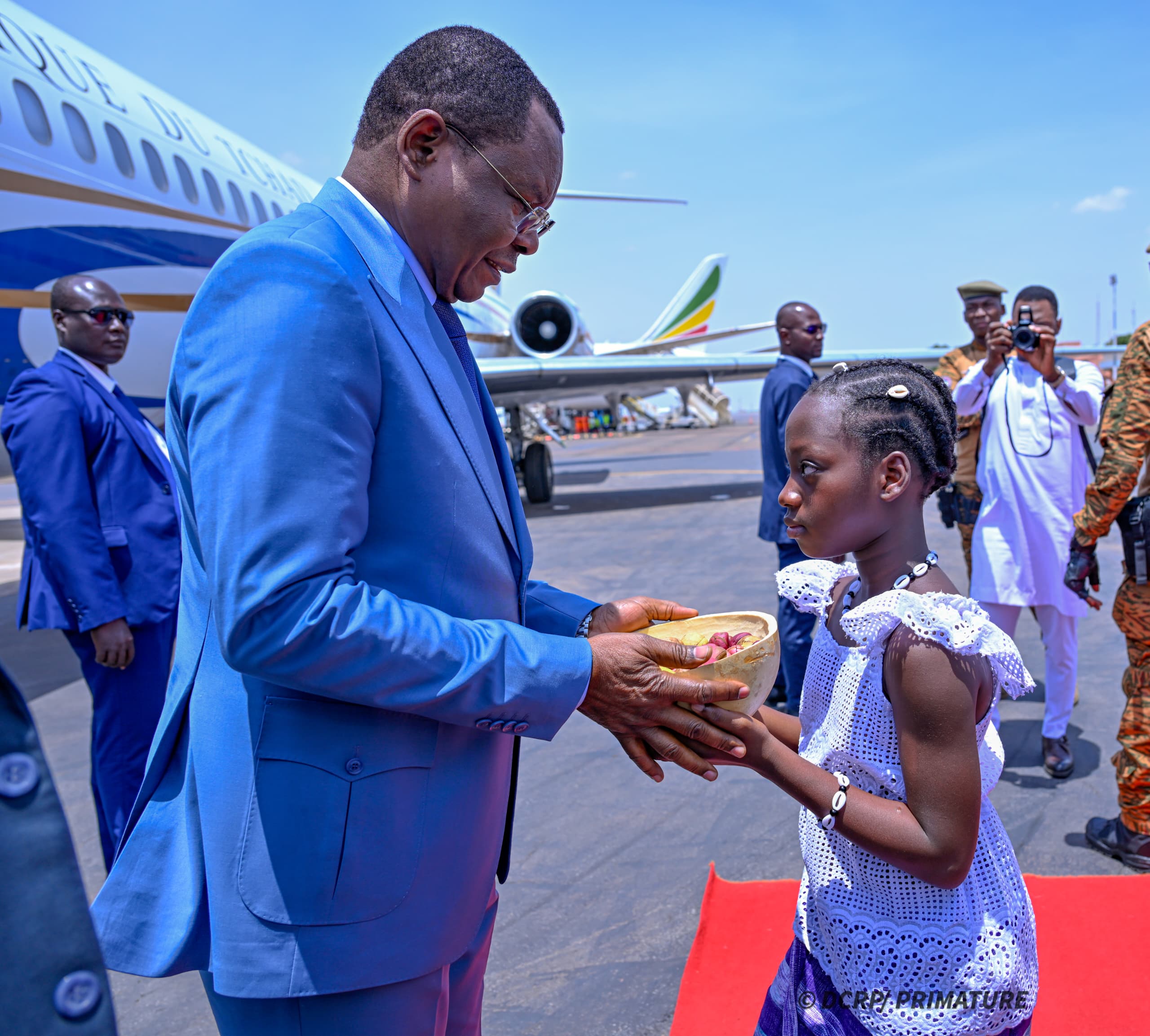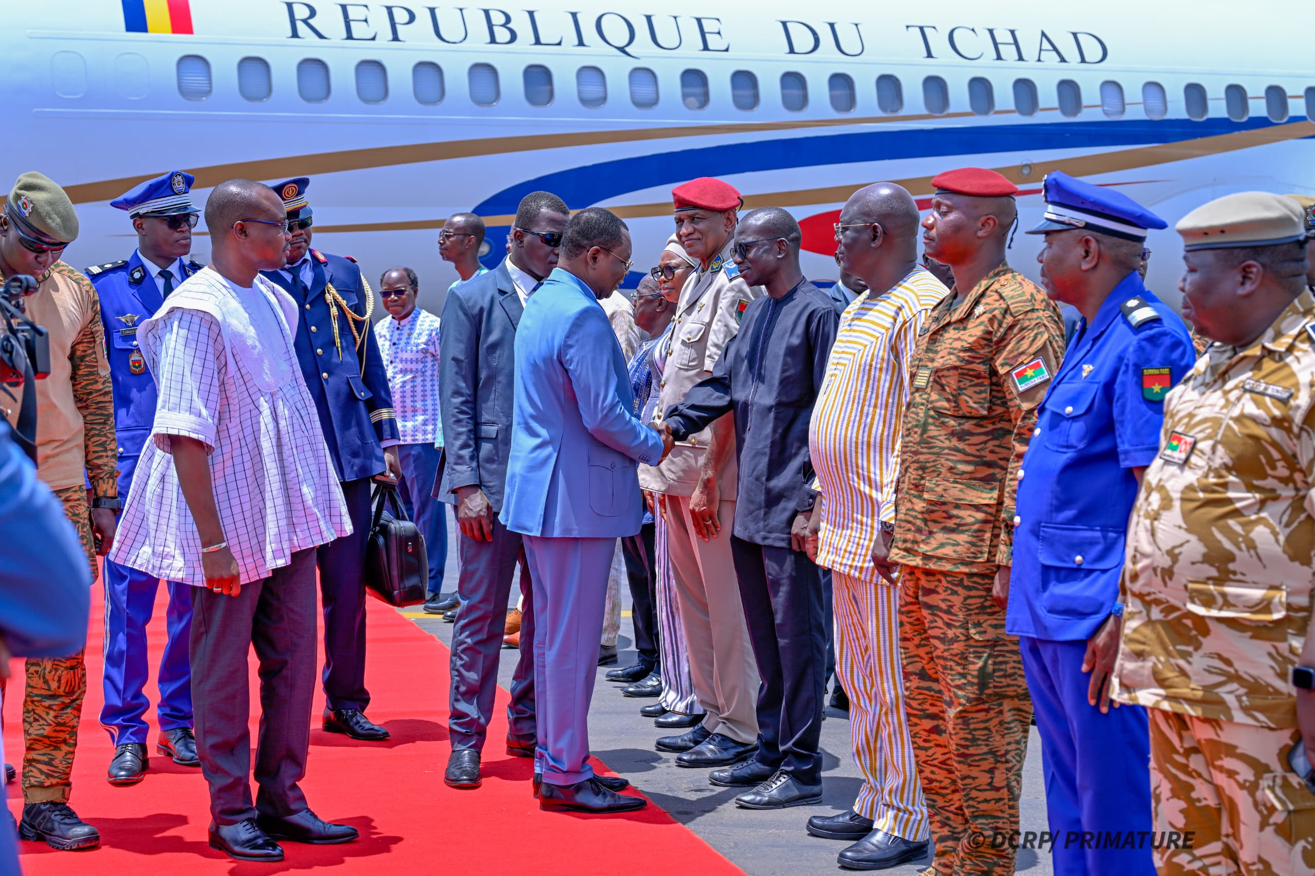 Le chef du Gouvernement burkinabè, entouré de membres de son équipe et de présidents d’institutions, a réservé un accueil officiel et fraternel à son homologue tchadien à son arrivée à l’aéroport international de Ouagadougou.