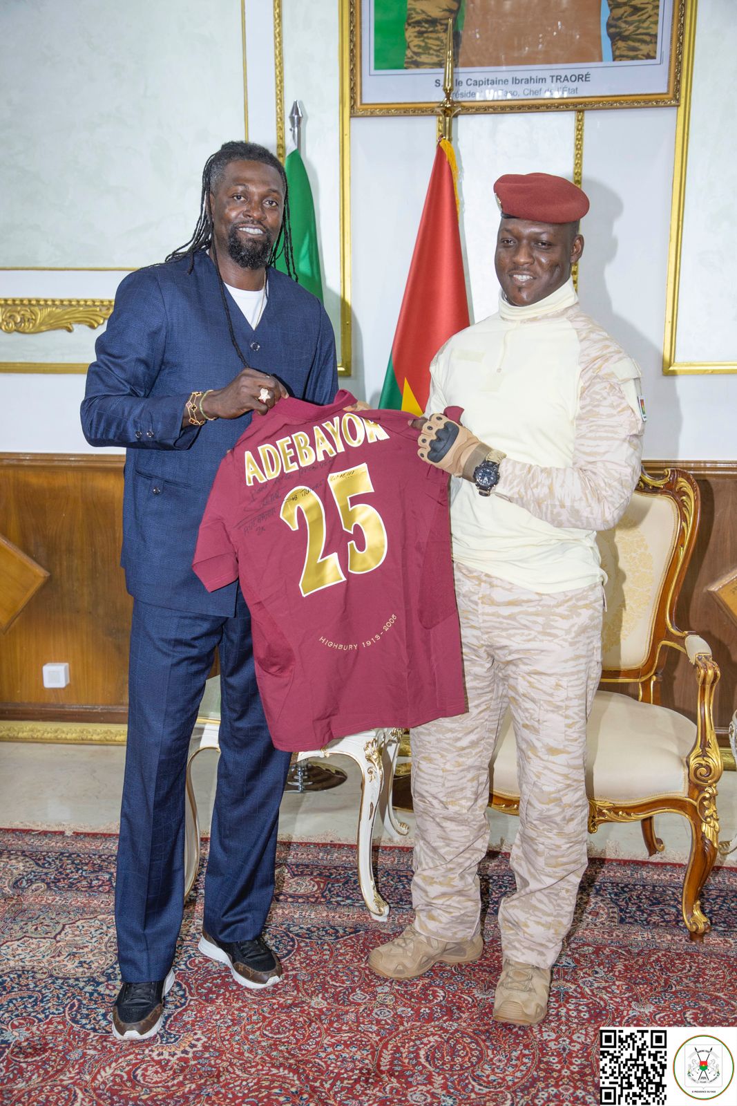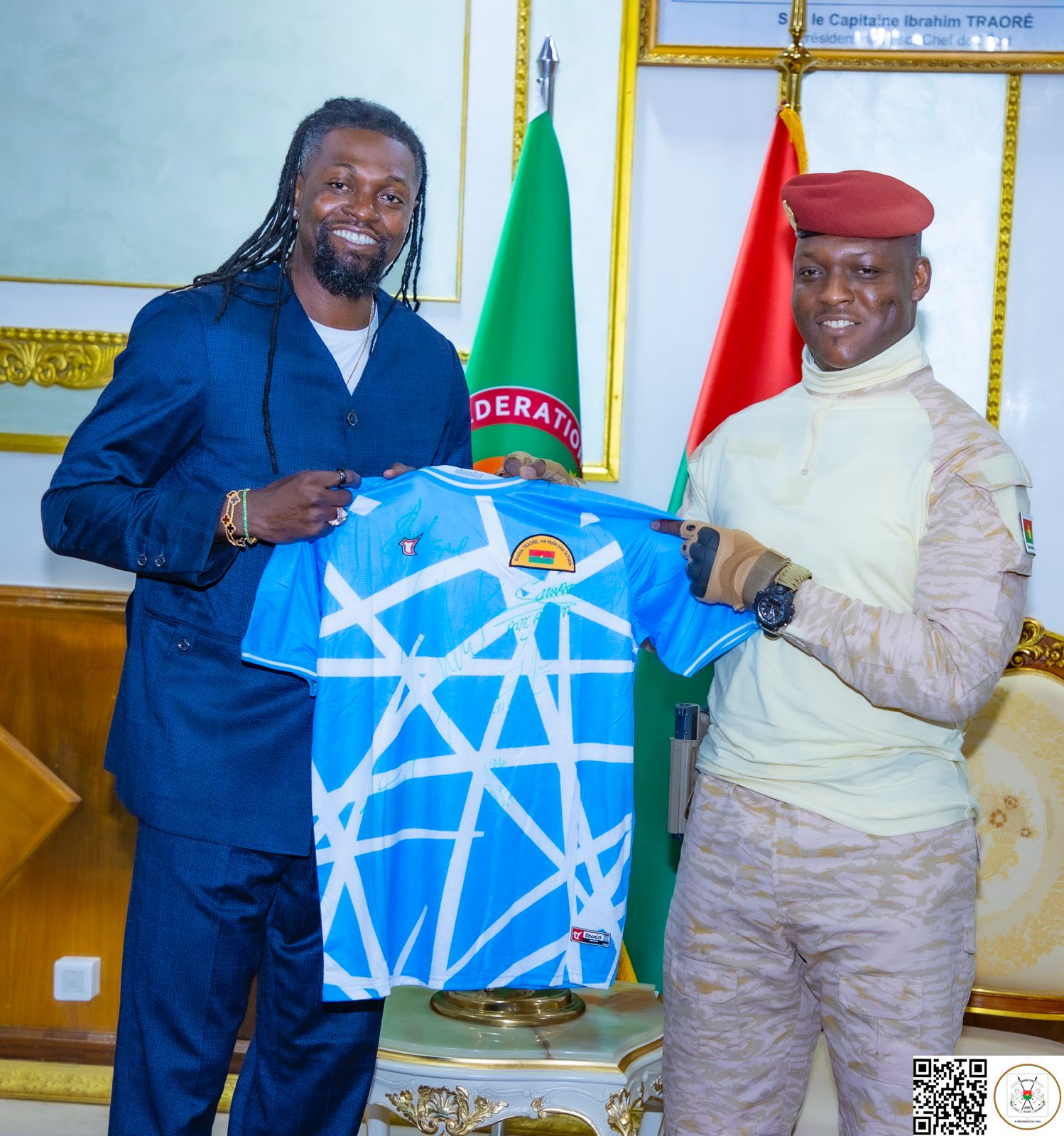Le Président du Faso, le Capitaine Ibrahim TRAORÉ a reçu en audience ce lundi l’ancien international togolais, Emmanuel ADEBAYOR, accompagné de l’ancien capitaine des Étalons, Charles KABORÉ, ambassadeur pour le sport au Burkina Faso.