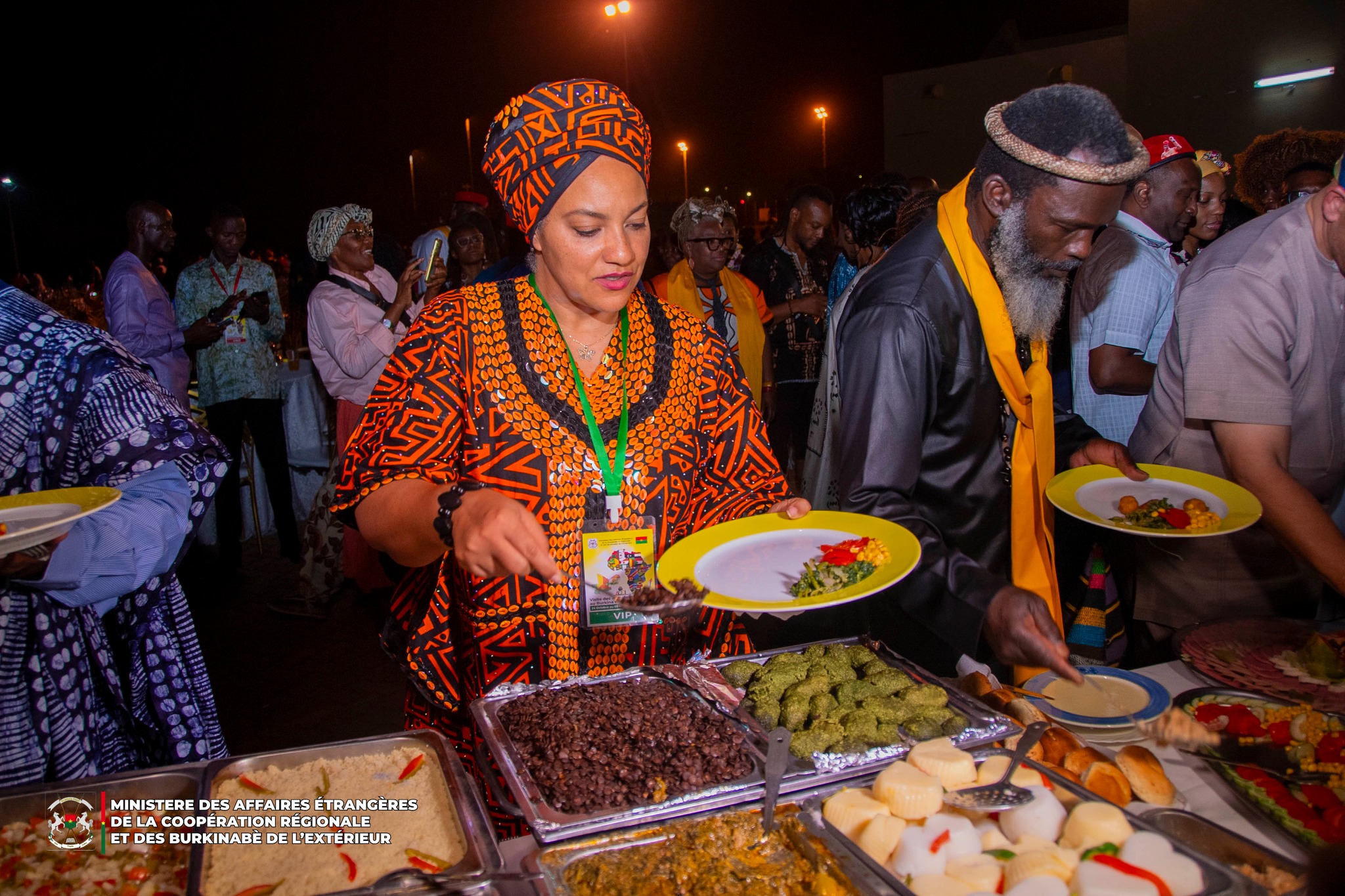 En séjour au Burkina Faso dans le cadre de leur visite symbolique sur la terre des ancêtres, les Afrodescendants et membres de la diaspora africaine ont pris part, le mardi 28 octobre, à une soirée de dégustation des mets traditionnels burkinabè.